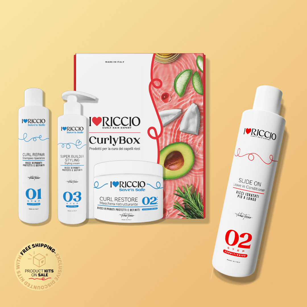 The Combo Repair Kit consists of our must-have products for bleached or damaged curly and wavy hair. Now even more complete with the addition of the Leave In Conditioner Slide On.