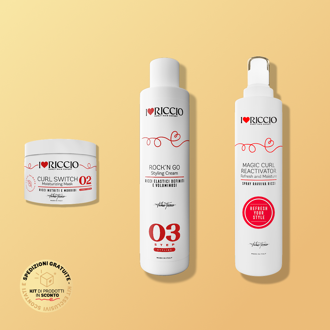 Abbiamo unito il conditioner Curl Switch, che garantisce nutrimento e idratazione profonda, con l’iconico Styling Rock’n Go. Completa il kit il Magic Curl Reactivator Spray, il refresh per ravvivare i tuoi capelli in pochi minuti nei giorni successivi al wash day.